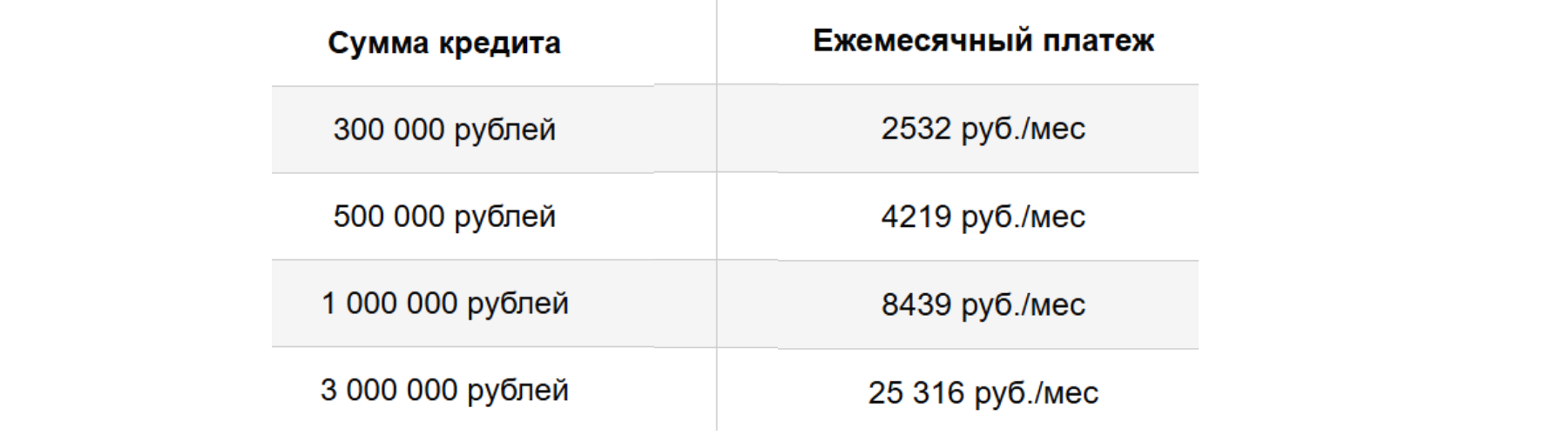 Мы не работаем с суммой кредитов менее 250 000 р.